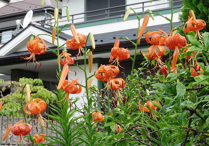 今日の画像は、鬼百合です。ご近所の庭の鬼百合が元気に咲いています。ユリのシーズンを締めくくる花でしょうか。