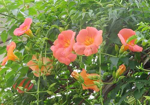今日の画像は、ノウゼンカズラです。6月下旬が盛りのノウゼンカズラ、6月末には散っていましたが、梅雨明けに誘われたかのように、再び咲き始めています。6月頃は色が濃かったけど、今の花の色は薄目です。