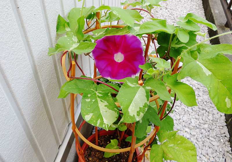 今日の画像は、一輪の朝顔です。我が家の小さな鉢植えの朝顔が一輪だけですが咲いています。昨年に庭で咲いていた朝顔の種から芽をだしたのを妻が鉢に植えていたら、時々、1輪づつ花を咲かせています。