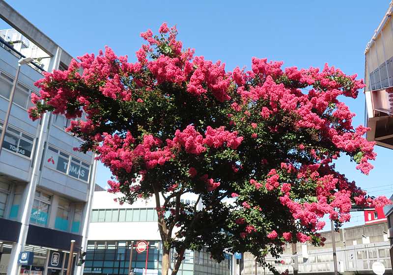 今日の画像は、深紅の百日紅です。鶴見駅東口にあるバスロータリ周辺に数本の百日紅が深紅の花を咲かせています。一週間ほど前に撮影した画像です。