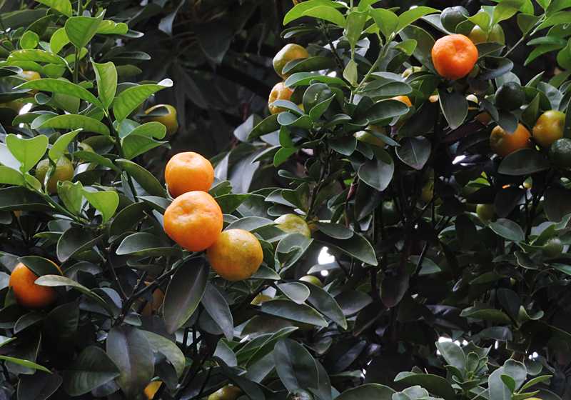 今日の画像は、通勤途中で見かけたキンカンです。形や色はミカンの様ですが、大きさが3cm程度と小さいのでキンカンでしょう。キンカンが色付くのは年末頃かと思っていたけど、既に色付き始めていました。