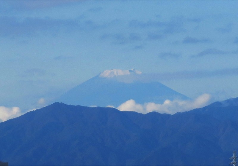 今日の画像は、今朝の富士山です。勤務校点検巡回中に4階から撮影しました。昨日、富士山に冠雪があったと報道されたので、撮影しました。北東の斜面が僅かですが白くなっているので、初冠雪をキャッチかも。