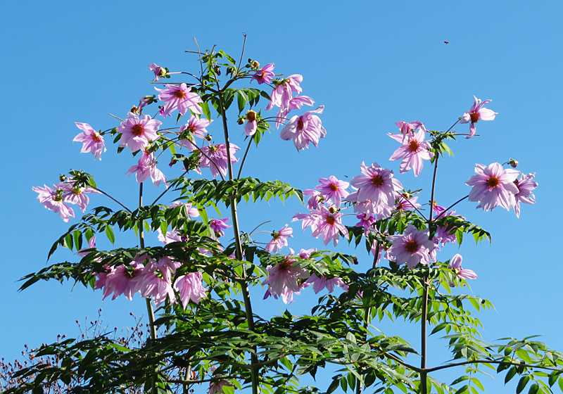 今日の画像は、通勤途中のお宅の庭の皇帝ダリアです。皇帝ダリアは背が高く、このお宅の屋根より上に花が咲いており、青空を背景に撮影でしました。