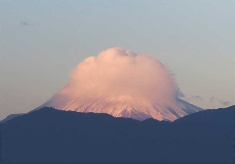 今日の画像は、勤務校から撮影した今朝の富士山です。富士山が雲の綿帽子をかぶっていました。滅多に見ない光景、特別な気象状態だったのかも。