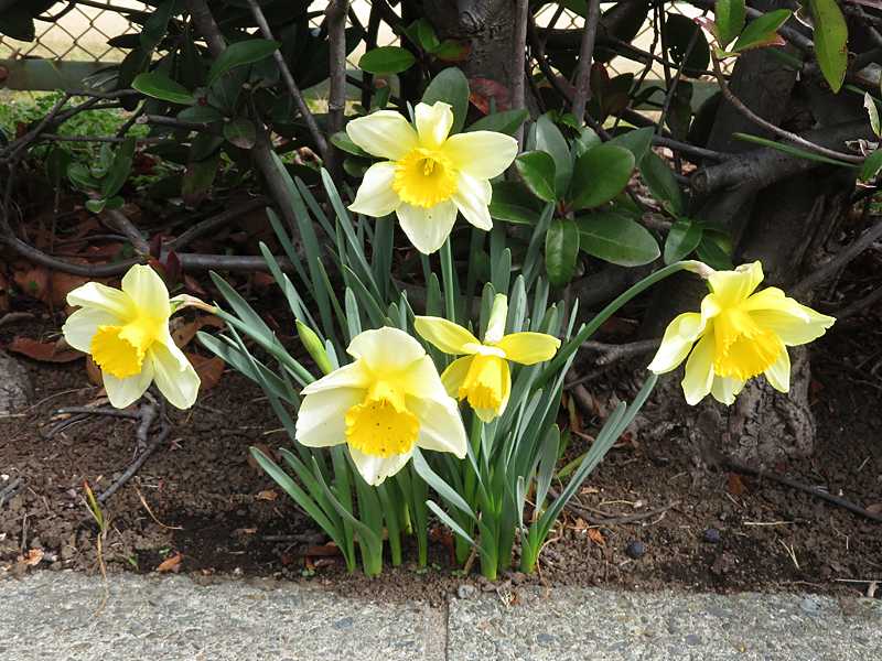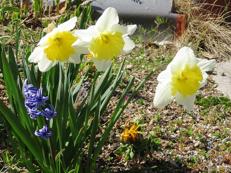 今日の画像は、黄色い春の水仙です。冬の時期に咲く小さな水仙は盛りを過ぎ、春の大きなラッパ水仙が咲き始めました。