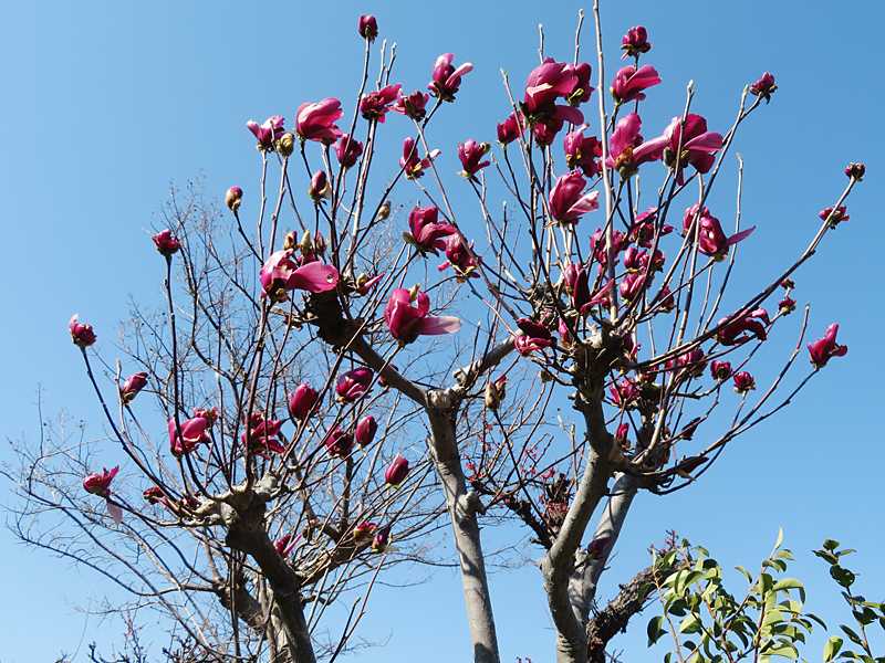 今日の画像は、紫モクレンです。先週の土曜日に撮影した画像です。ハクモクレンの開花から半月程度遅れて紫モクレンが盛りです。