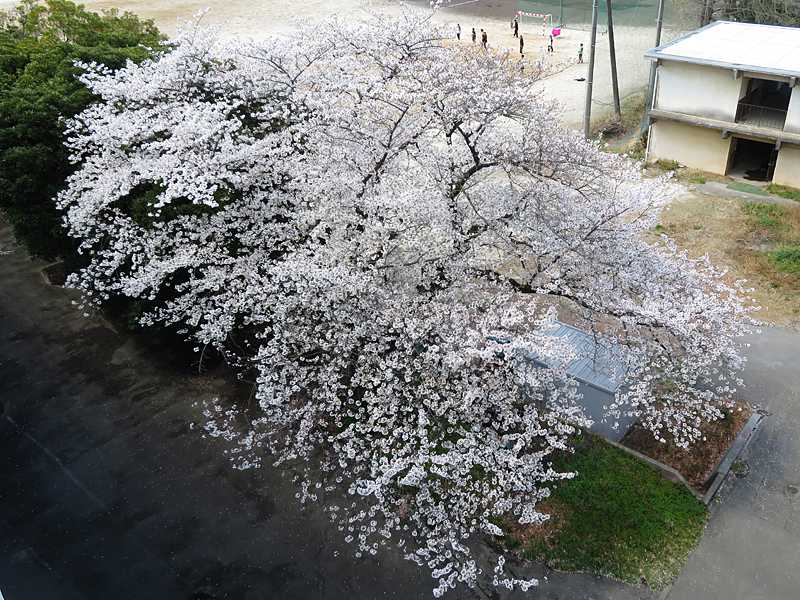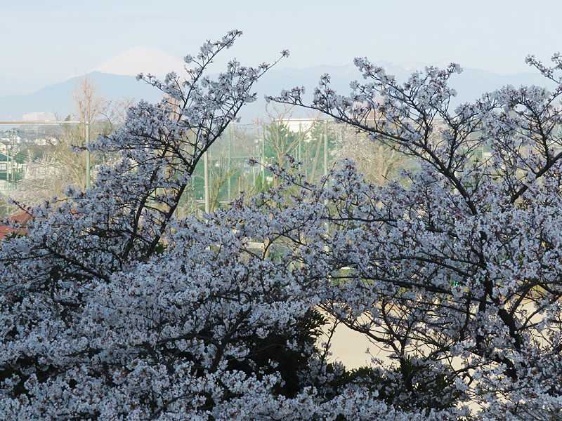 今日の画像は、勤務校の桜です。今週の火曜日に満開になっていたけど、その後雨天が続いており、撮影できませんでした。今日はやっと晴れたので、校舎の4階から撮影しました。気温が低い日が続いていたので、ほとんど散らずに満開の状態です。校舎の3階からだと、その桜の花の先に富士山が見える状態でした。ただ、富士山が見えた早朝は桜に陽が当たっていないので、冴えない画像になっています。
