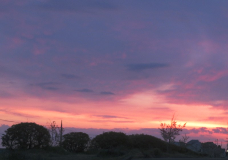今日の画像は、今朝の朝焼けです。自宅を出た直後、夜明前の東の空が朝焼けで染まっていました。朝焼けは天気が崩れる前兆、その通り、今日は天気が下り坂でした。