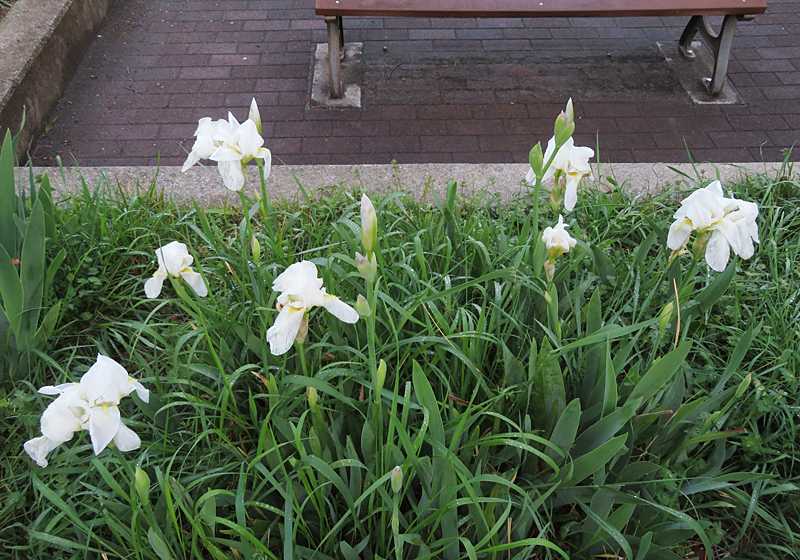 今日の画像は、アヤメの花です。早朝ウォーキングの途中にある小さな公園の花壇で白いアヤメが咲いていました。