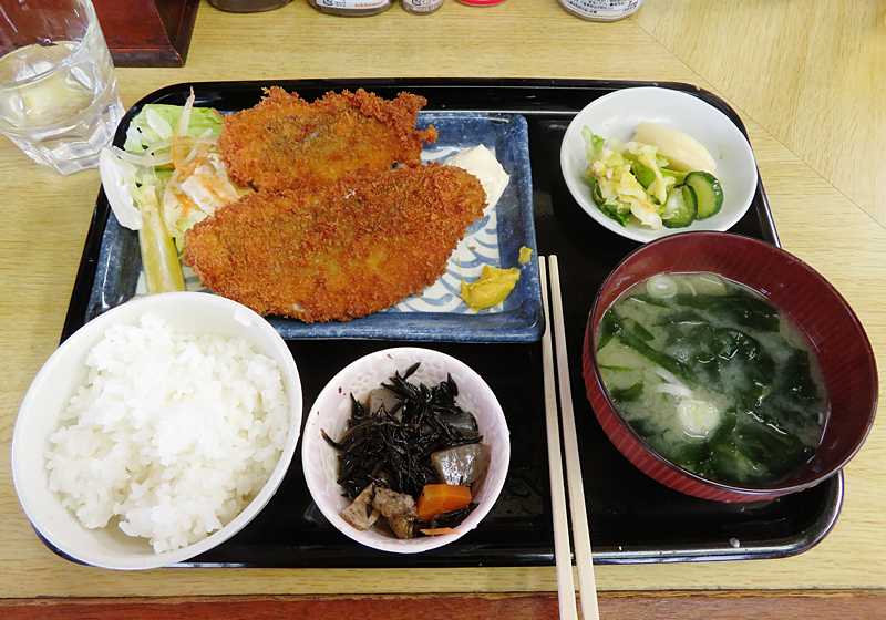 来店客は、ほとんどがアジの刺身、アジフライ、アナゴ天婦羅の単品かランチセットを注文。私がアジフライ定食、妻がアナゴ天婦羅定食、共に小ライスを注文で合計2500円。今朝に吊り上げられたアジとアナゴ、大きく柔らかくプリプリ。味噌汁のワカメも柔らかく新鮮で、全て美味しかったです。近くに海上自衛隊の施設があるので、自衛官も良く立ち寄る様です。