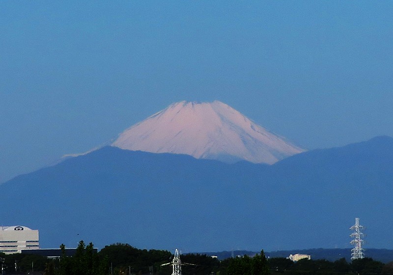 今日の画像は、今朝の富士山です。勤務校の4階から真っ白な富士山が輝いて見えていました。中腹より上は冠雪状態です。