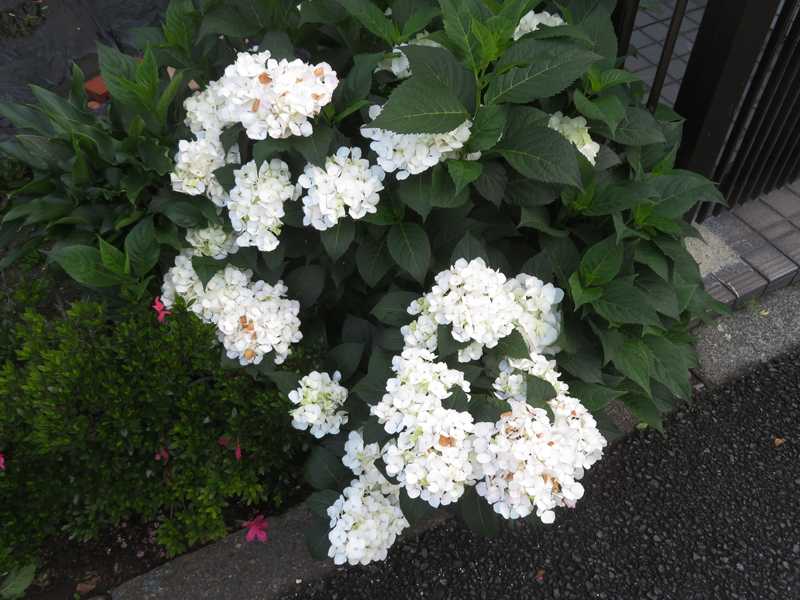 今日の画像は、白いアジサイです。アジサイは赤や青が多いけど、このような白いものもあります。ただ、白い物は、徐々に赤みを帯び、最終的には赤くなります。