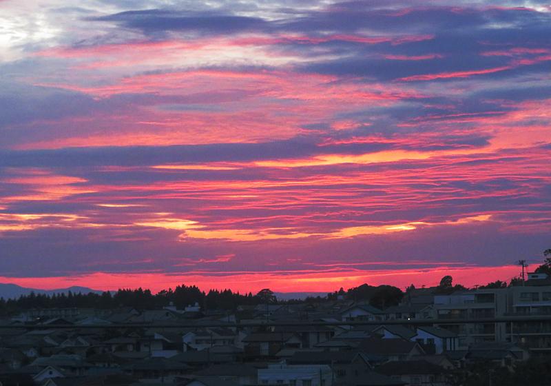今日の画像は、昨夕の夕焼けです。天気が悪い日が続いていたので、夕焼けを見たのは久しぶりでした。夕焼けは好天の前触れと言われるけど、それは外れでした。
