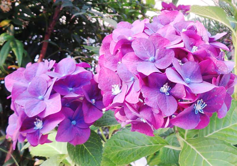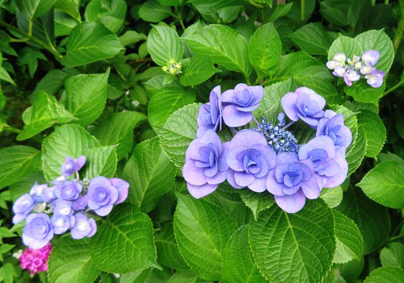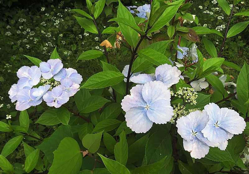 今日の画像は、ちょっと変わった額アジサイです。額アジサイの額が八重咲で丸みを帯びています。ケーシーという品種でだそうです。