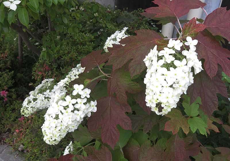 今日の画像は、柏葉アジサイです。葉が柏葉に似ているのことからこの名前になったけど、私としてはコーンアイスみたいなのでコーンアイスアジサイと呼びたいです。