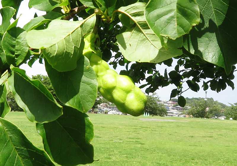 今日の画像は、コブシの実です。春に白い花を咲かせたコブシ、間だ緑色ですが実がついています。実が複数集まった集合果、ゴツゴツした感じが子供の拳の様なので、コブシと言う名前になったとか?