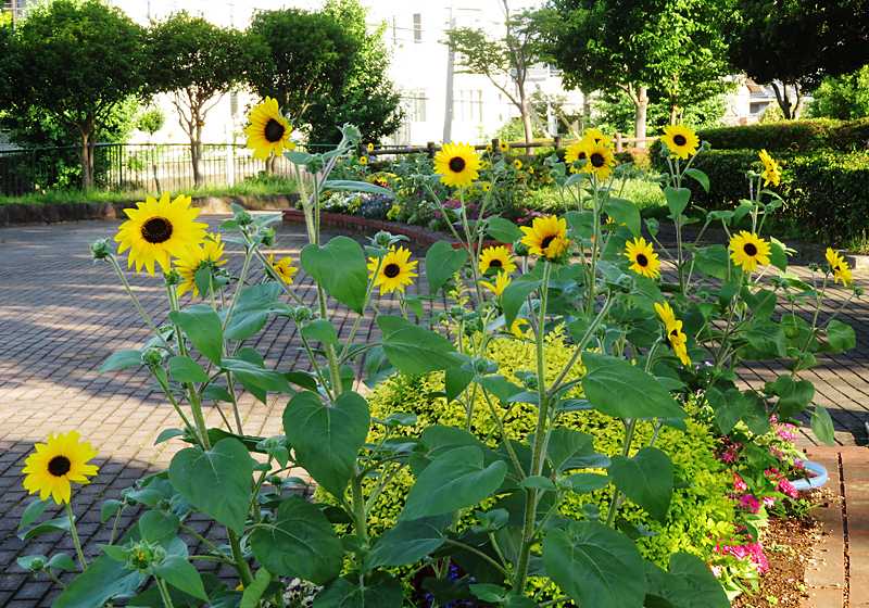今日の画像は、ヒマワリの花です。近くの大きな公園の花壇でヒマワリが元気に咲いています。