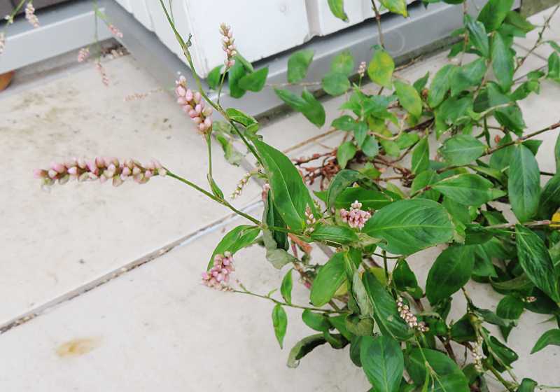 今日の画像は、藍の花です。昨年まで庭で咲いていた藍の花、昨日の画像のシソに駆逐され、庭では見かけなくなったけど、玄関先のタイルの目地の隙間に根付き、花を咲かせています。
