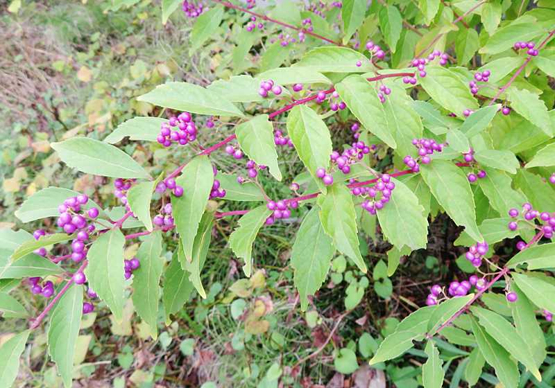 今日の画像は、コムラサキの実です。紫色の小さな実が枝一杯に連なっており、余り目立たなく、ひっそりと生えています。