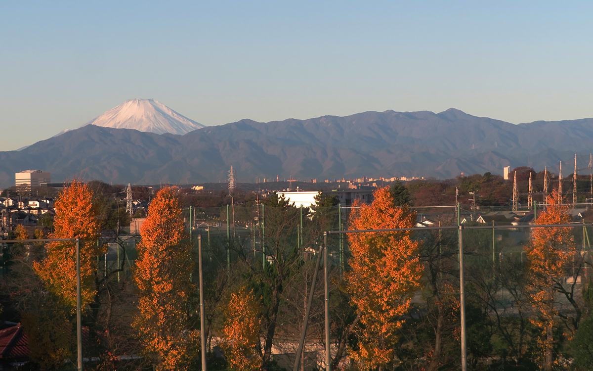 今日の画像は、勤務校の今朝の景色です。寒気の南下で空の透明度が高く、丹沢山地の先の富士山がくっきりと見え、校庭の西側の黄葉したイチョウとのコントラストが素敵でした。日の出直後なので、イチョウの葉が赤く染まって見えていました。