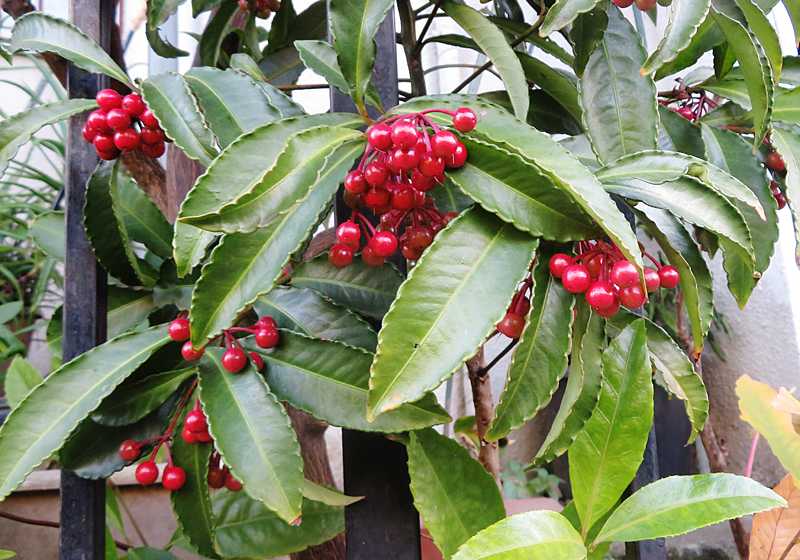 今日の画像は、万両の実です。冬は赤い実が目立ちます。万両・千両は正月の飾りにもなります。