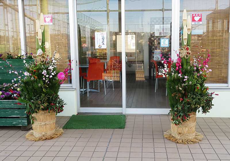 今日の画像は、近くの大きな公園に飾られた松飾です。公園の管理会社も年末年始休暇なので、事務所・休憩室・コミュニティルーム・野球場・テニスコートは全てクローズなので、人は少なく広場で遊ぶ人達しかいません。我が家の玄関ドアの外には妻が正月お飾りを付けました。